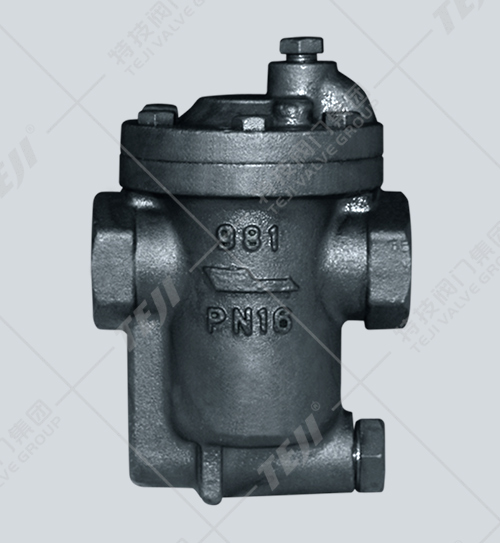 倒置桶式蒸汽疏水閥(981型)利用冷凝水和蒸汽的密度差的工作原理,內(nèi)部結(jié)構(gòu)是由杠桿系統(tǒng)連接倒吊桶,克服蒸汽壓力開關(guān),倒吊桶式疏水閥內(nèi)部是一個倒吊桶為液位敏感件,倒吊桶開口向下。裝置剛起動時,管道內(nèi)出現(xiàn)空氣和低溫冷凝水,此時疏水閥是全開放,空氣和低溫冷凝水迅速排出,裝置很快提升溫度。當(dāng)蒸汽進(jìn)入倒吊桶內(nèi),倒吊桶產(chǎn)生向上浮力,倒吊桶連接杠桿帶動閥心關(guān)閉閥門。倒吊桶上開有一小孔,能自動排空氣,當(dāng)一部份蒸汽從小孔排出,另一部份蒸汽產(chǎn)生凝結(jié)水,倒吊桶失去浮力向下沉,倒吊桶連接杠桿帶動閥心開啟閥門。當(dāng)蒸汽再進(jìn)入倒吊桶內(nèi),閥門再關(guān)閉,循環(huán)工作,間斷排水。